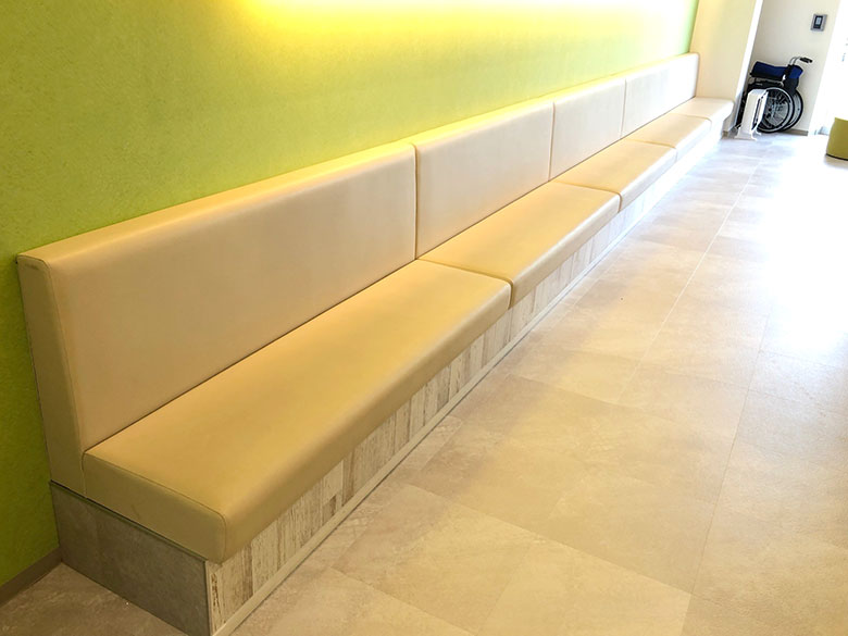 クリニックの待合スペースです。明るく清潔、リラックスできる空間づくりに努めております。