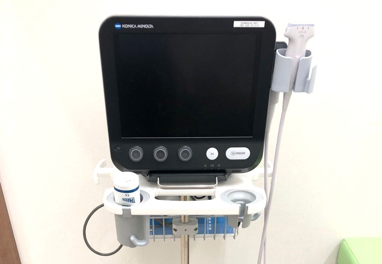 超音波(エコー)によって、患部の診察・状態の確認ができる機器になります。